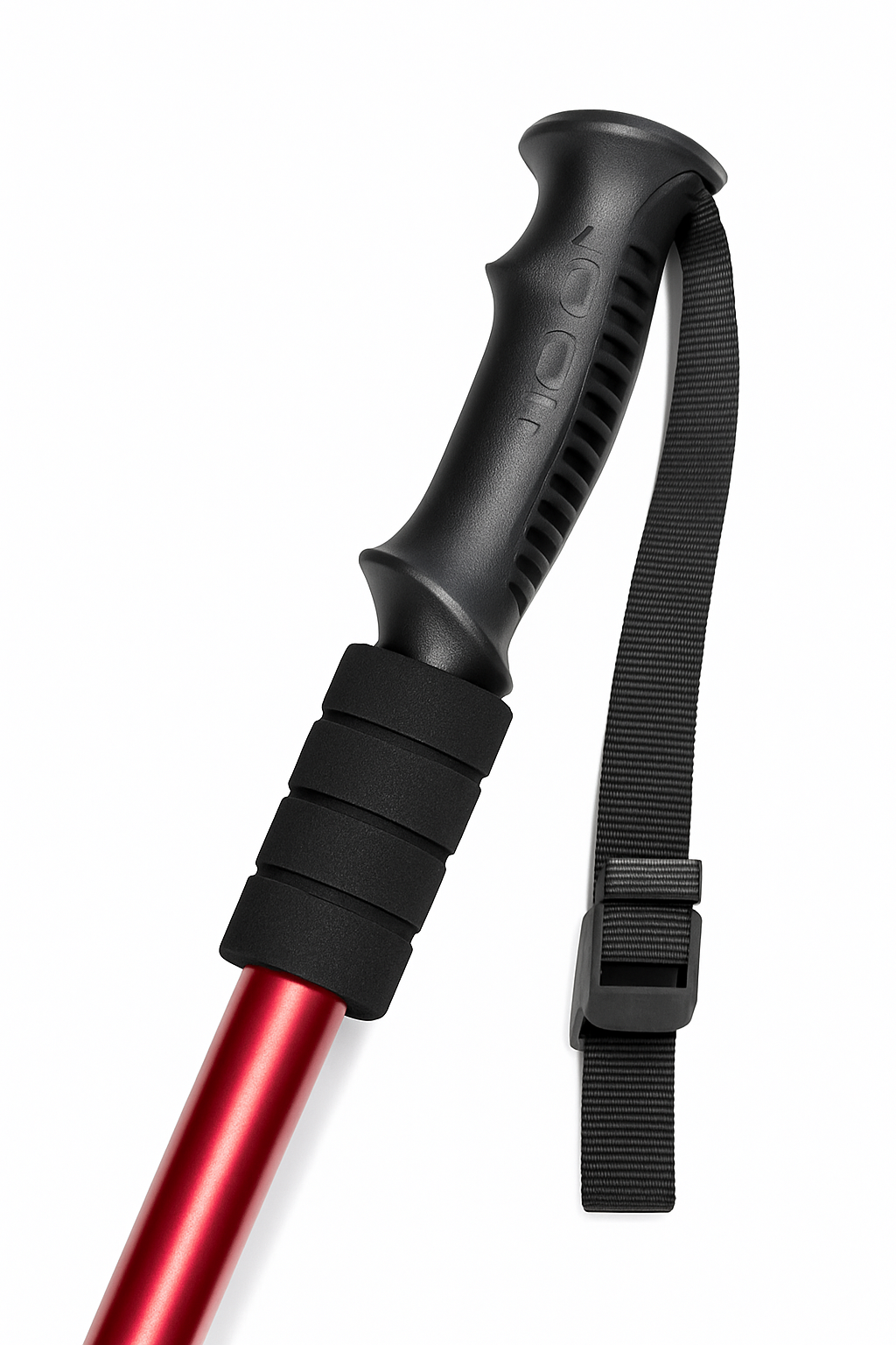 Pourquoi ? Ainsi, c'est votre poignet qui supporte le poids du corps via la sangle, et non vos doigts qui doivent serrer la poignée. Vous pouvez même ouvrir la main sans lâcher le bâton. Cela réduit considérablement la fatigue des mains.