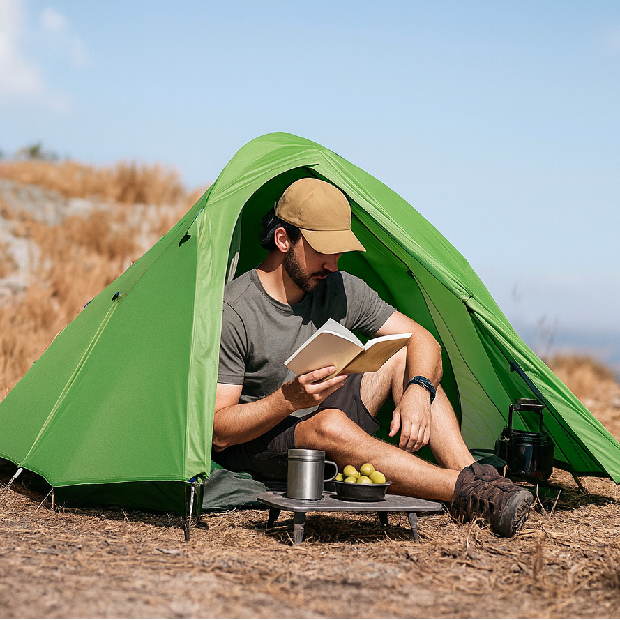 Vous partez l'esprit tranquille. Avec un poids contenu (moins de 2kg même en version duo), vous transportez un abri capable de vous protéger toute l'année. C'est la liberté de planter votre campement n'importe où, n'importe quand, en sachant que votre nuit sera sèche et calme.
